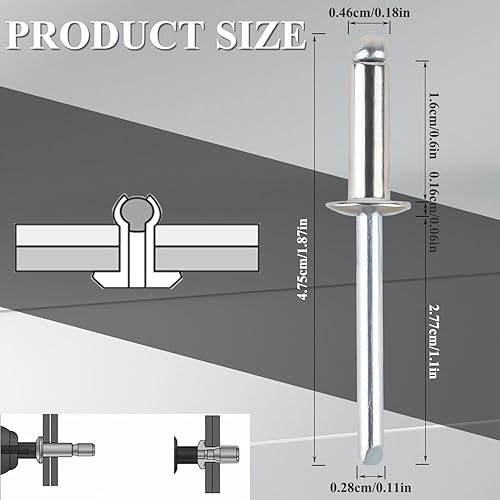 Delsen 100 Stück Blindnieten 4,8 mm x 16 mm Pop-Nieten Sortiment Popnieten Set Kuppelkopfnieten für Bau, Automobil,Blindnietzangen
