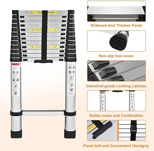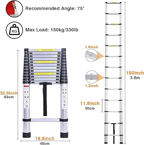 Klappbare Trittleiter, Teleskopleiter, Teleskopleiter, zusammenklappbar, aus Aluminium, maximale Belastung 150 kg (3,8 m)