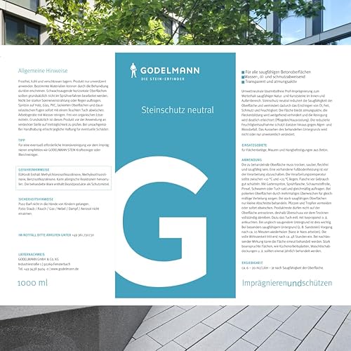 GODELMANN Steinimprägnierung außen | imprägniert Betonsteine, Pflastersteine & Terrassenplatten | Langanhaltende Steinversiegelung & Steinschutz | 1,0 l