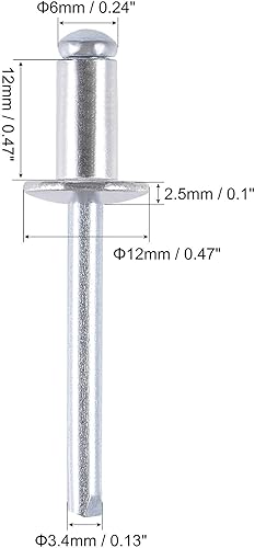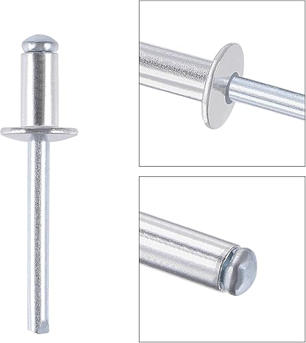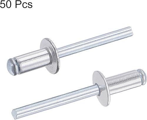 sourcing map 50 Stk. Blindnieten Aluminium Zugnieten Kerndekorationsnieten 6mm Durchm. 12mm Grifflänge Silber