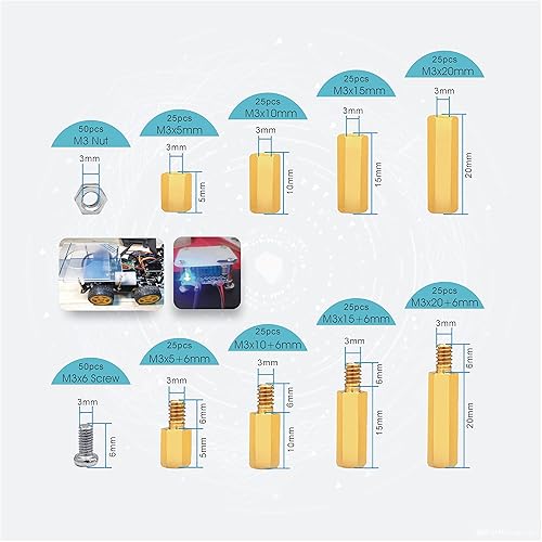 KUBOWAI 300 Stück Messing Abstandshalter M3 Sechskant Männlich-weiblich Schraubenmutter-Sortimentssatz Pillar Standoff Spacer für PCB Motherboard