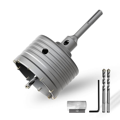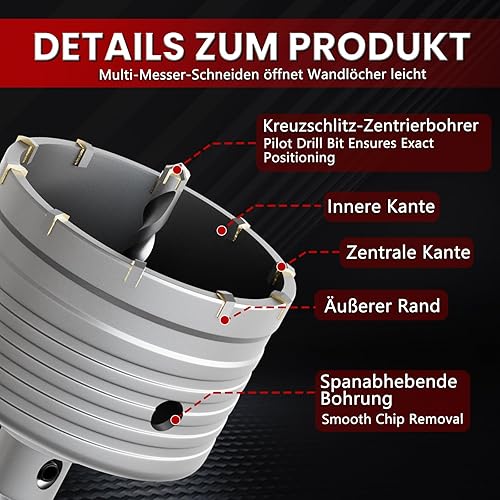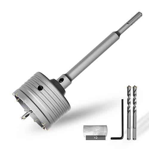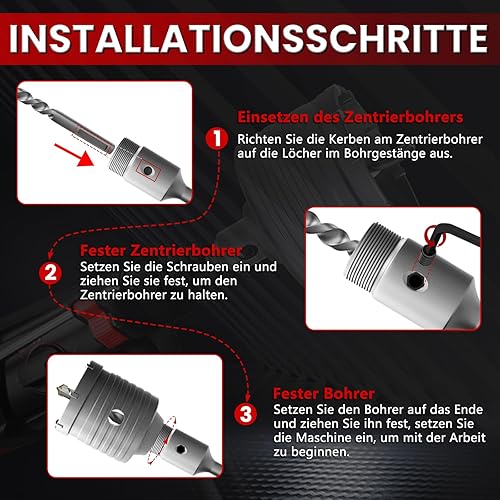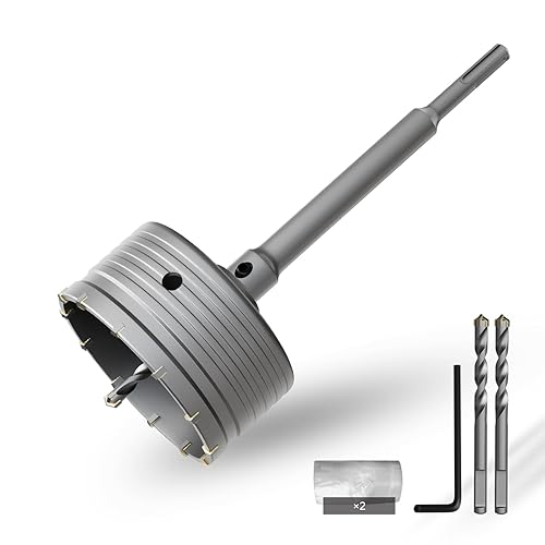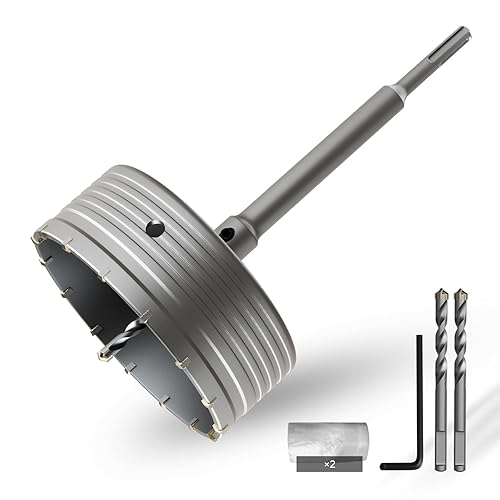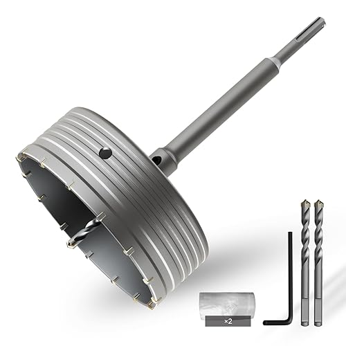 CSOOM 110 mm Beton-lochsäge mit 220 mm SDS-Plus verlängerung, Lochsägen-Set für Beton, Hohl-Bohrkrone Set, 4 Schneiden Zentrierbohrer 8x110mm, Hartmetallspitze, 2xZentrierbohrer