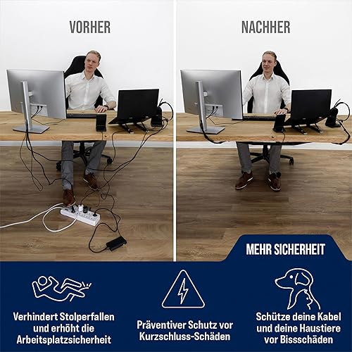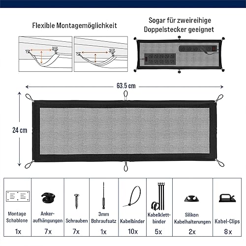 Kabelnetz Schreibtisch für ideales Kabelmanagement - Flexibler Kabelkanal Schreibtisch –Jedes Kabel verstecken (63,5x24 cm, Weiß)