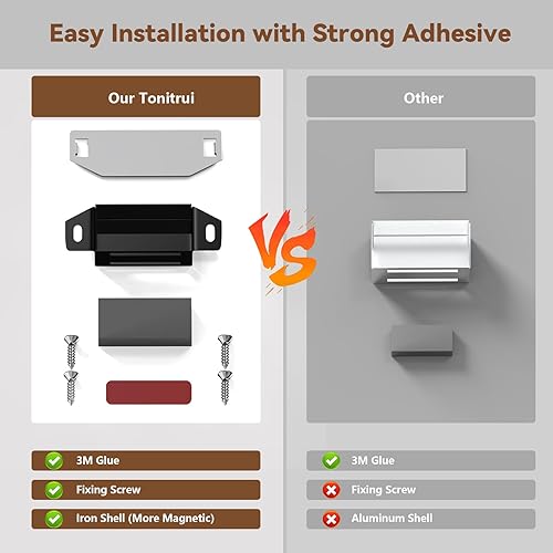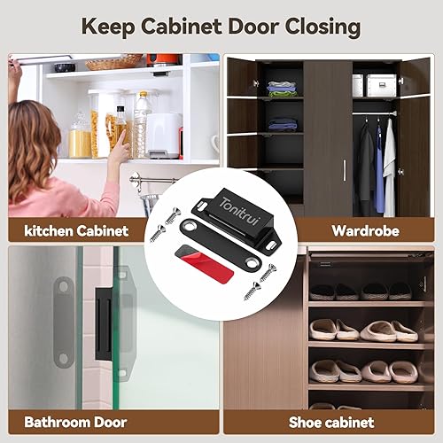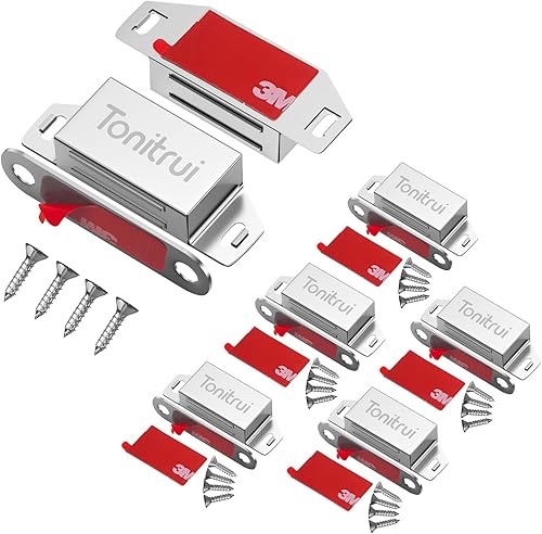 Tonitrui Schranktür-Magnet, flacher Boden, Schrank-Magnetschnäpper mit Klebstoff, 15,9 kg magnetischer Schranktür-Schubladen-Riegel (Silber, 4 Stück)