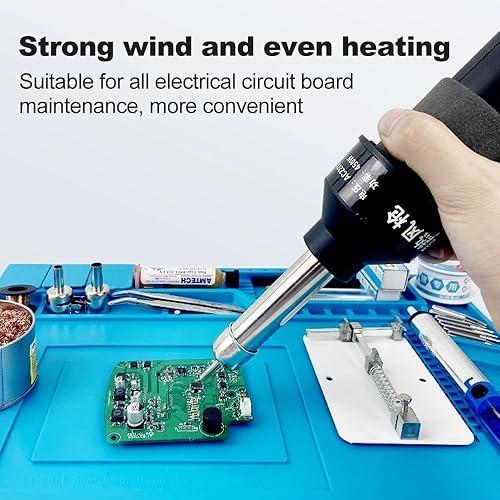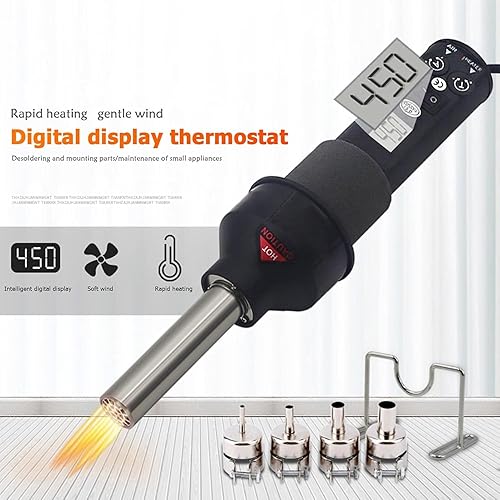 DEWIN Heißluftgebläse,Heißluftschweißgerät 220V 450W LCD Einstellbare Elektronische Wärme Heißluftpistole Entlöten Lötstation IC SMD BGA
