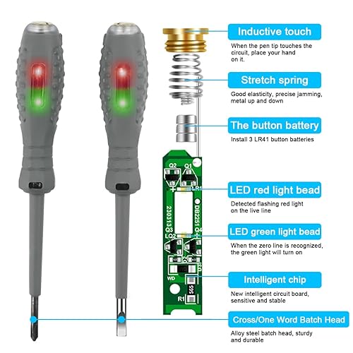 2-in-1-Schraubendreher mit starkem Drehmoment und Magnet 2 Stück,Stromdetektor,Magnetischer Schraubendreherkopf,Berührungsloser Spannungsprüfer,zur Erkennung von Wechsel-/Gleichstromkreisen