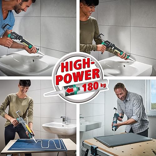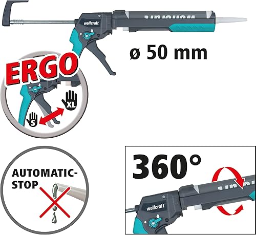 wolfcraft MG 400 Kartuschenpresse Ergo - 4354000 - Ergonomisch mit Griffweitenverstellung - 180 kg Auspressdruck für Klebstoff, Silikon und Acryl aus 310-ml-Kartuschen