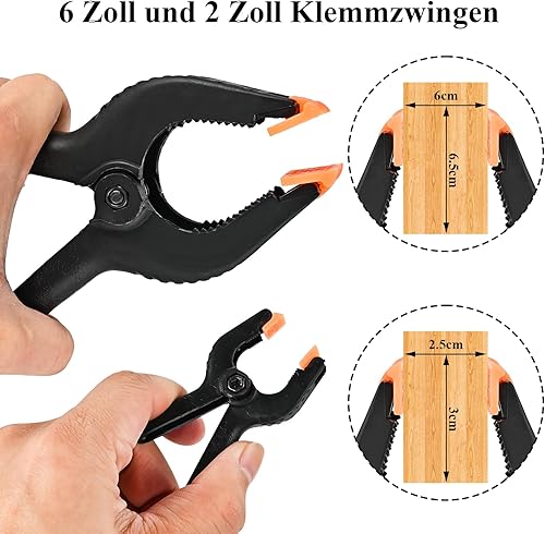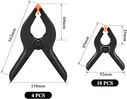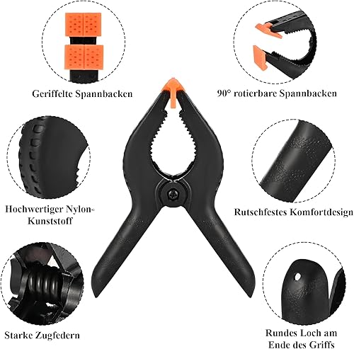 Philtool 14 Stück Klemmzwingen Set, Hochleistungs Schwarze Nylon Federklemmen, Klemmzwinge mit Beweglichen Klemmbacken für Holzbearbeitung, Fotostudio, Handwerk (Schwarze)