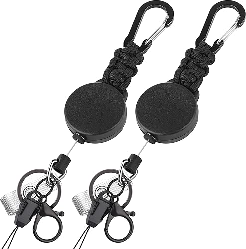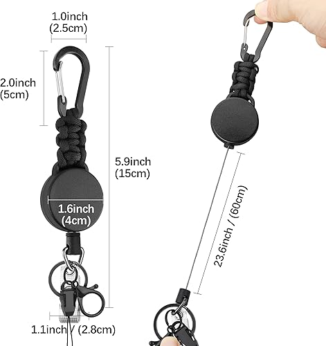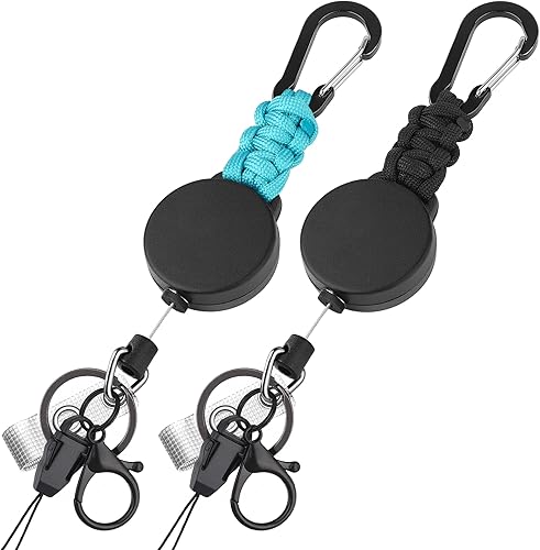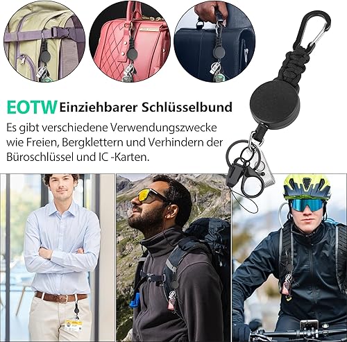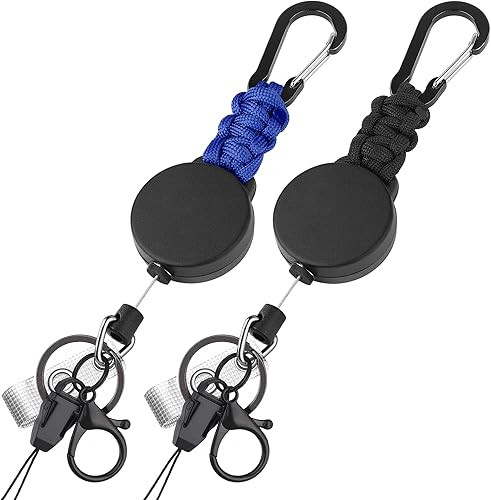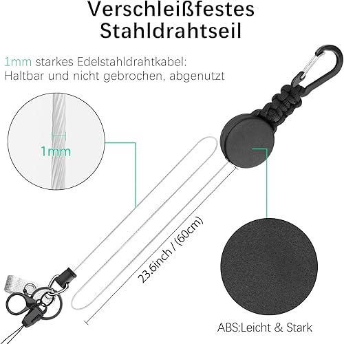 EOTW Schlüsselanhänger Ausziehbar,2 Stücke Schlüsselband Einziehbarer Ausweis mit 60cm Ausziehbar Stahlseil,Karabinerhaken Schlüsselring für Schlüssel, Gürtelclip und Kartenhalter,Schwarz + Blau