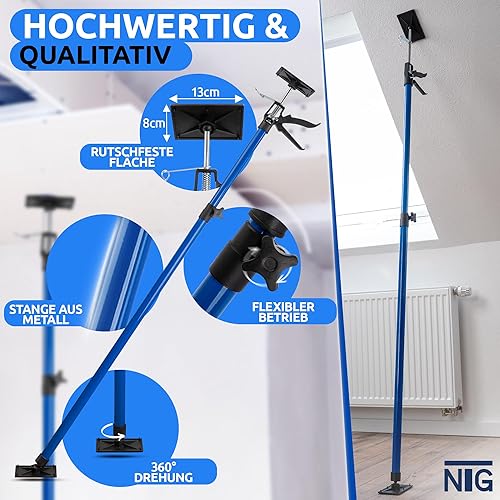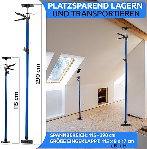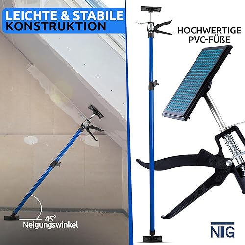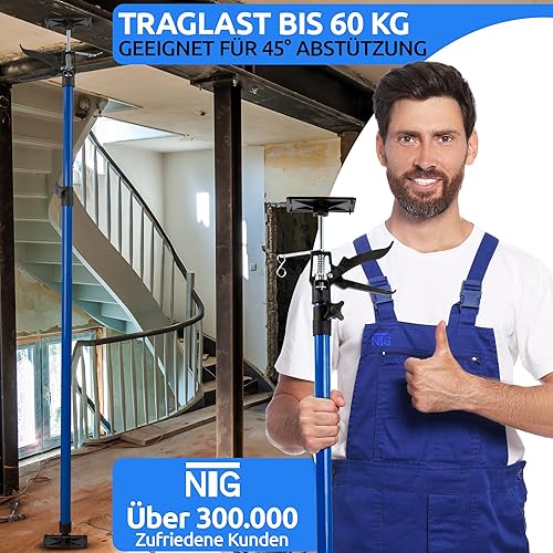 NTG Einhandstütze | 115-290 cm | Bis 30 kg | 45° Winkel | Für Trockenbau, Ausbau, etc. | Montagestütze | Deckenstütze | Teleskopstütze | Deckenstütze (2 Stück)