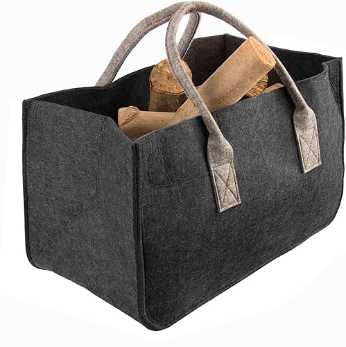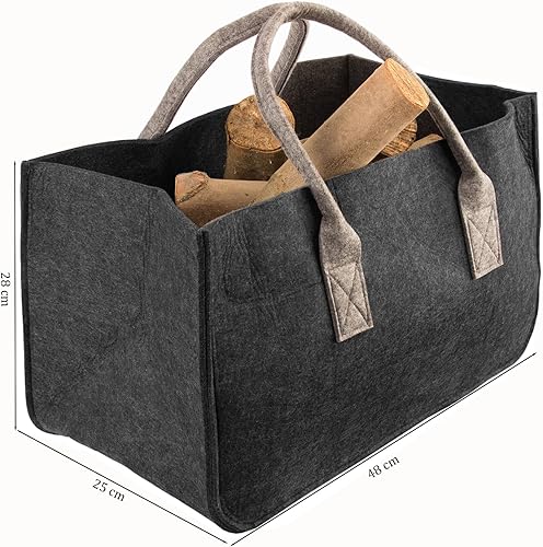 BigDean Filztasche Filzkorb anthrazit - für Kaminholz Shopper mit Henkel groß - Kaminzubehör - Holzkorb Einkaufskorb – Aufbewahrung faltbar