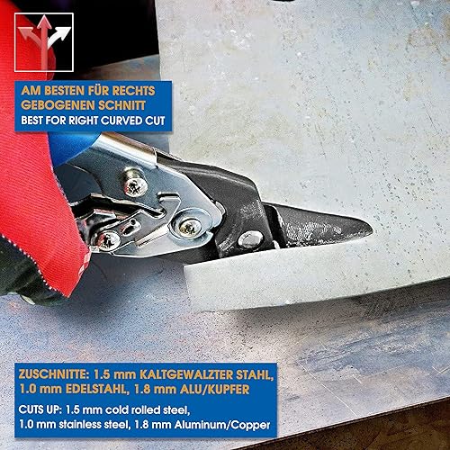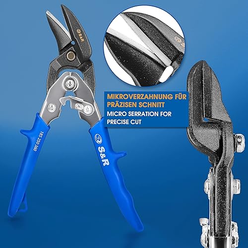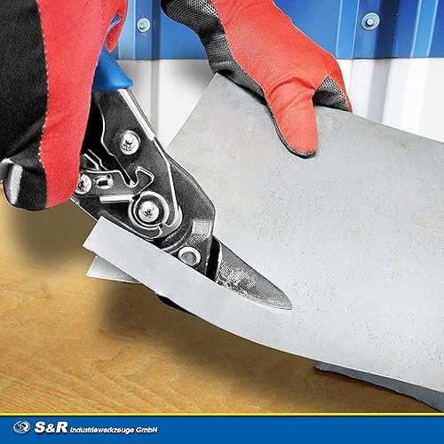 S&R Blechschere, Profi-Qualität Hochleistungsschere Ideal-Serie, stark und wendig, Rechtsschnitt, 260 mm, Durchlaufschere für Blech mit doppeltem Hebel