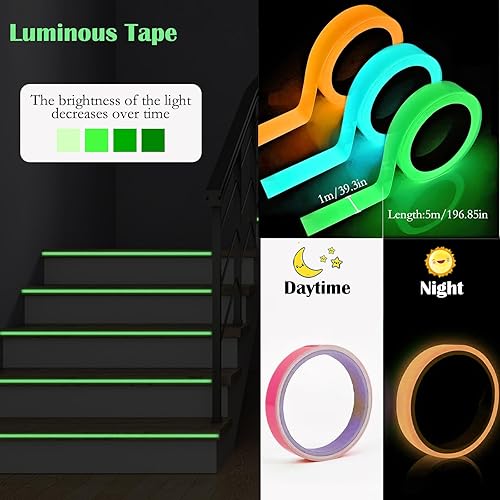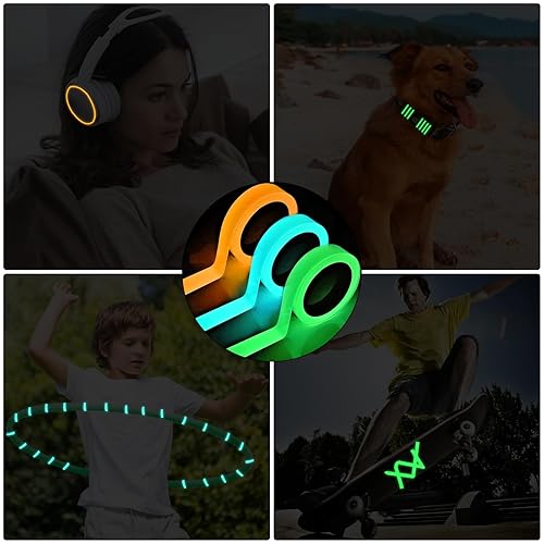 VOSSOT 3 Stück Fluoreszierendes Klebeband,Leuchtendes Band,Leuchtendes Klebeband 10m* 10mm,Nachleuchtend Markierungsband,Luminous Tape Wasserdicht,Warnband Selbstklebend,Tragbar