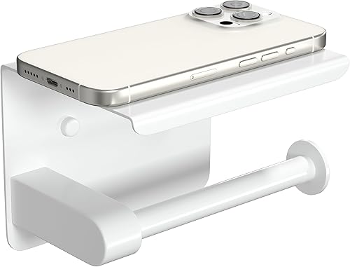 AZOMKER Toilettenpapierhalter, Klopapierhalter Ohne Bohren, Klopapierhalter, Toilettenpapier Halter, Toilettenpapier Halterung, Klopapier Halterung, 3M-Kleber/Schraubmontage (Weiß)