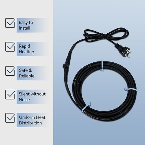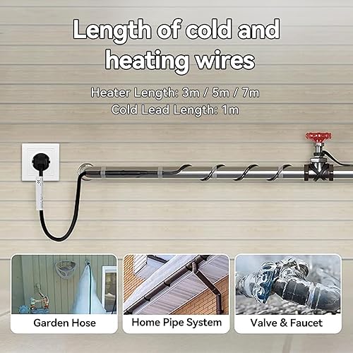 MincoHome Pipe Heating Cable Built-in Thermostat 200-240V Plug-in Water Pipe Anti-Freeze Kit Energy-Saving (3M)