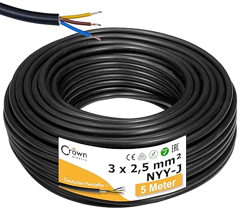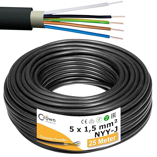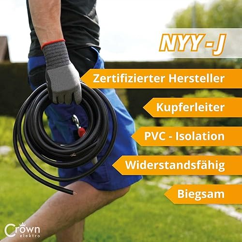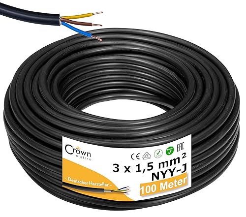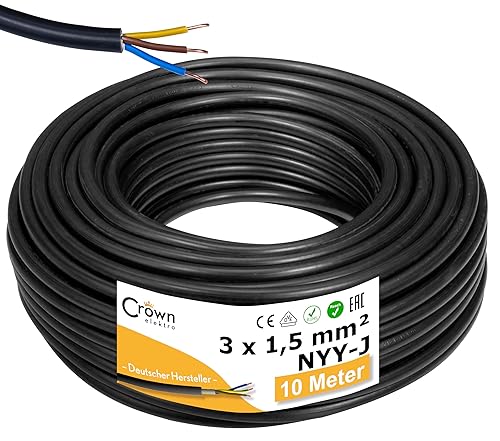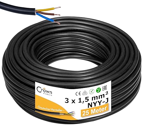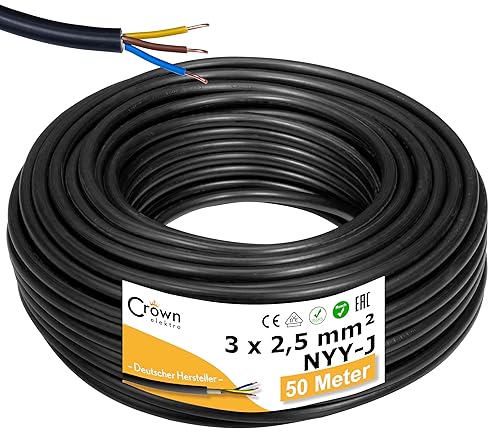 NYY-J 3x1,5mm² 50m Erdkabel Länge am Stück | Elektrokabel Ring für Verlegung im Erdreich & Außenbereich | Kupfer Eindrähtig DIN VDE 0276 Teil 603/627 | Deutsche Markenhersteller