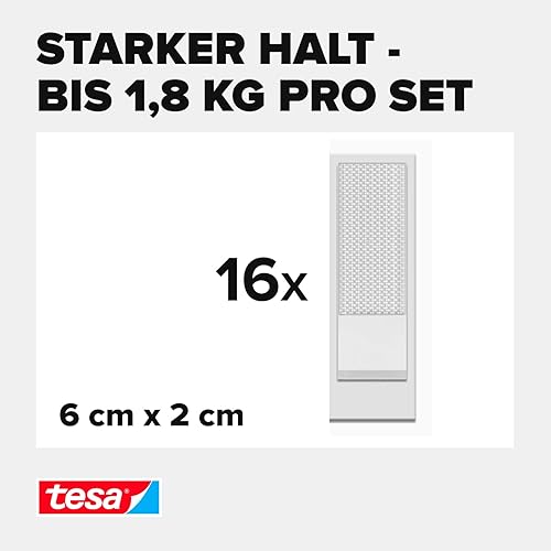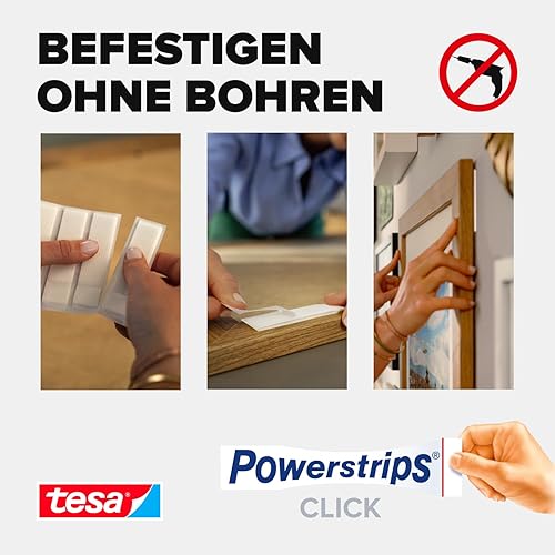 tesa Powerstrips CLICK - Klett-Klebepads zum An- und Abklicken von Bilderrahmen und Wanddekorationen ohne Bohren - selbstklebende Klettband-Strips mit ON und OFF Click-System - Small - 16 x 2 Stück