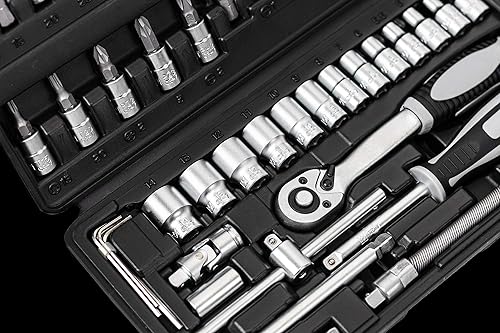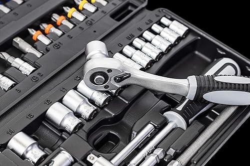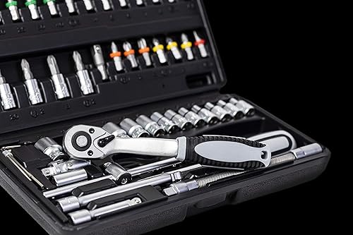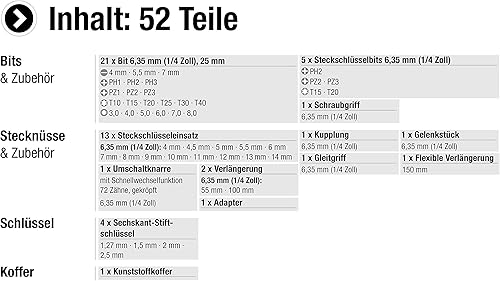 Connex Bit- und Steckschlüssel-Satz 52-teilig - Stabiler Kunststoffkoffer - 1/4 Zoll - Umschaltknarre mit Schnelllösefunktion - Für Montage- & Schraubarbeiten / Stecknuss-Set / Bit-Set / COXB365010