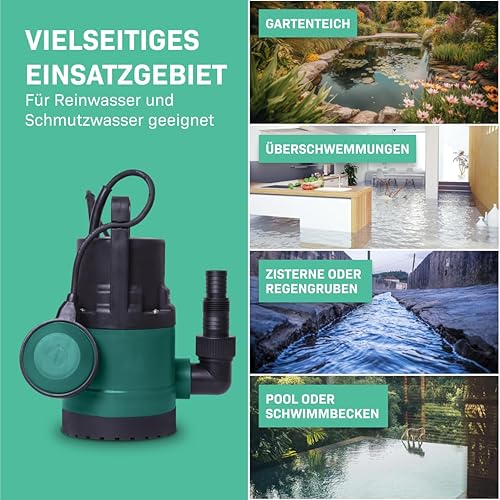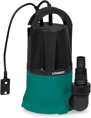 VONROC Tauchpumpe mit integriertem Schwimmer [750W] - Schmutzwasserpumpe für Keller, Pool, Gartenteich - Flachsaugend max Höhe [7,5m] - 1400 l/h für sauberes und schmutziges Wasser