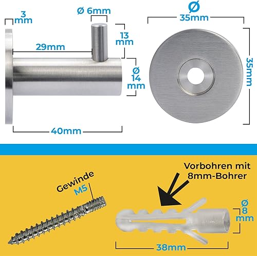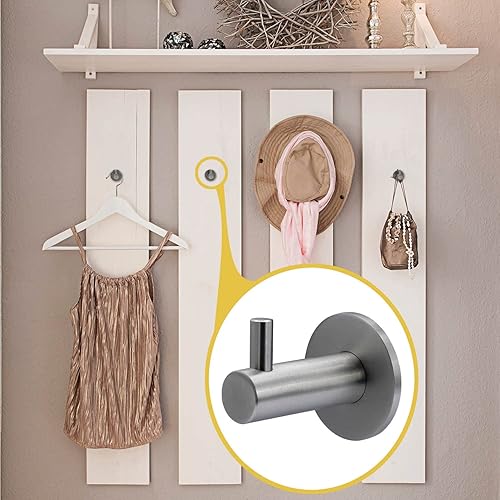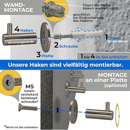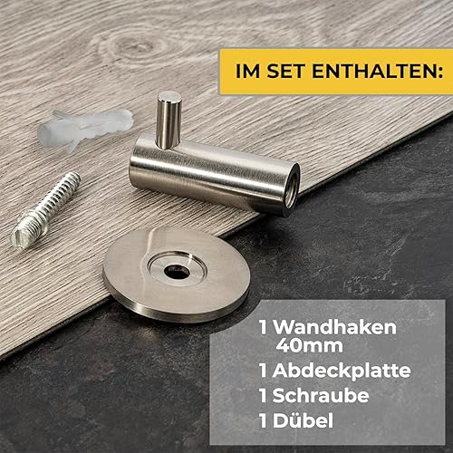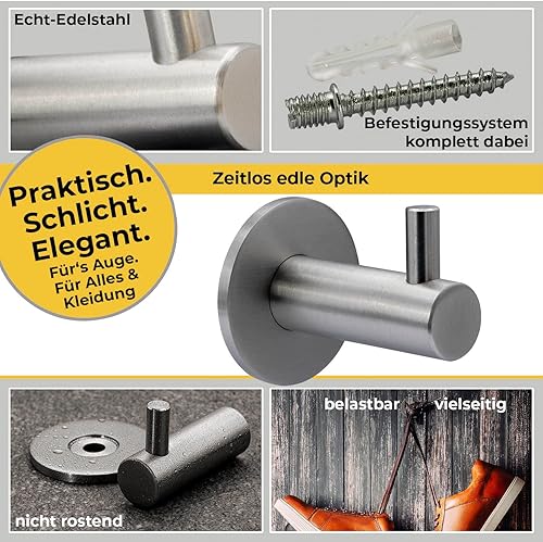 Neuhall 4 x Wandhaken Kleiderhaken Wand Handtuchhaken echt Edelstahl gebürstet nicht rostend Garderobenhaken Badezimmer Handtuchhalter für Wand-Montage inkl. Befestigungsset | Classic-rund Länge: 40mm