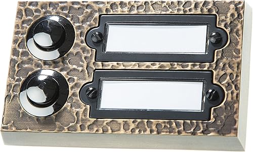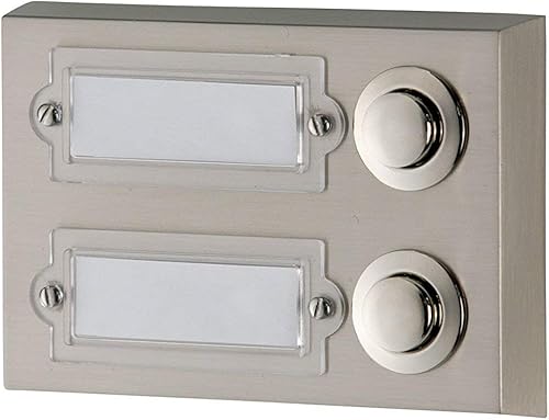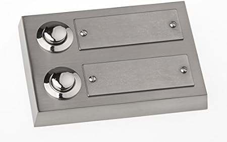 HUBER Aufputz Klingeltaster 2 fach aus Metall - Türklingelknopf mit Namensschild - Haustürklinge Aufputz I Taster aus Messing verchromt - Klingel Haustür 2 fach