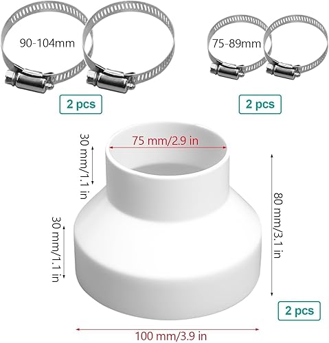 2 Stücke Abluftschlauch Adapter Klimagerät Rohrverbinder 100 mm Bis 75 mm, ABS Material Abluftschlauch-adapter Reduzierstück, Mehrzweck Dunstabzug Rohr Verbinder, für Lüftungssystem Lüftung Rundrohr