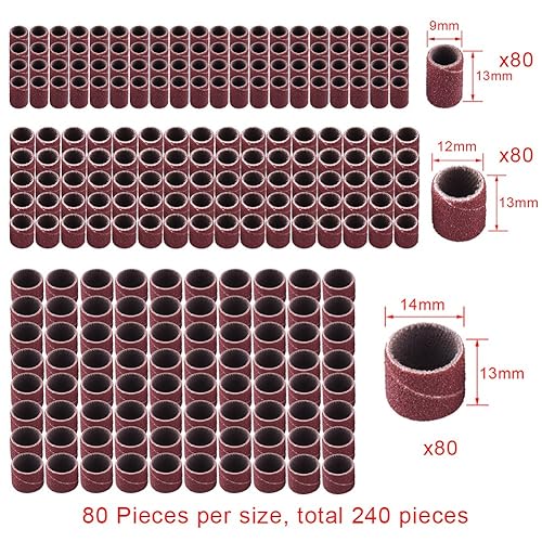 AUSTOR 252 Stück Schleifhülse Satz mit Frei Box Einschließlich 240 Stück teilig Schleifen Bands and 12 Stück Schleifwalze for Dremel Drehwerkzeug