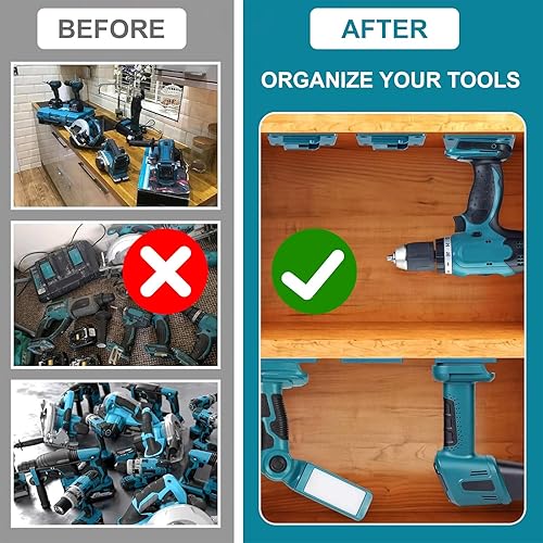 Luckwaii Wandhalterung Werkzeughalter für Makita 18V, 8 Stück Werkzeug Wandhalterung Batteriehalter mit 32 Schrauben, Elektrowerkzeug Bohrwerkzeuge Halterung Maschinenhalter 14.4-18V (Cyan Blau)