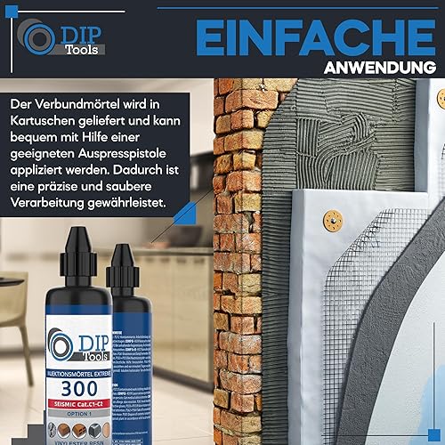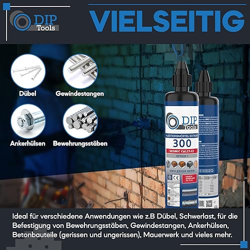 DIP-Tools Injektionsmörtel Extreme I extra stark für gerissenen & ungerissenen Beton | inkl. 2 Statikmischern - Montagemörtel Verbundmörtel Dübelmörtel Flüssigdübel Betonkleber (2x300ml)