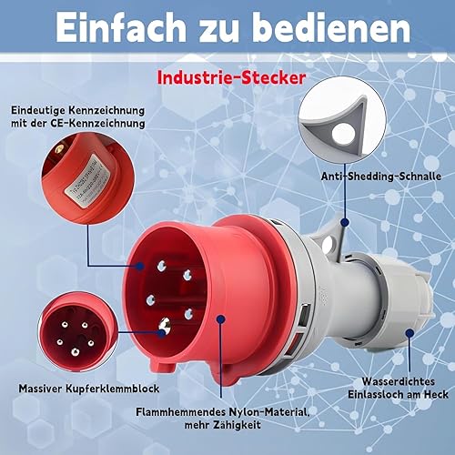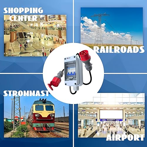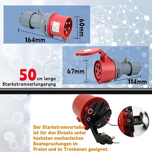 AIFIZO CEE Adapter 32a auf 16a Adapter, Starkstrom Adapter 32A Stecker auf 16A Kupplung mit Leitungsschutzschalter 16A, CEE Starkstrom Verlängerungskabel 0.5m, Dual Power Automatis cher