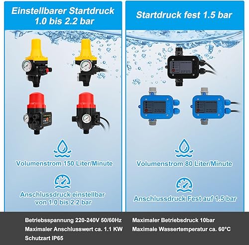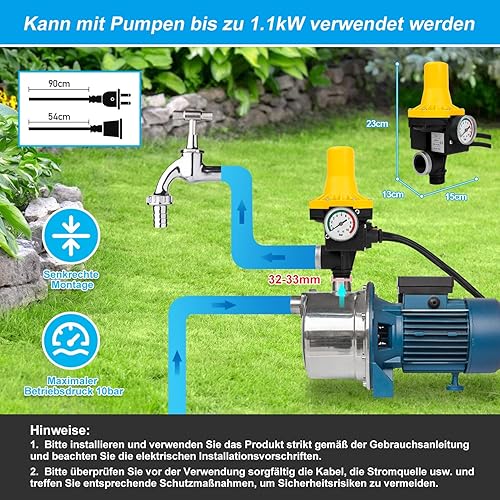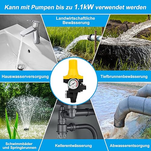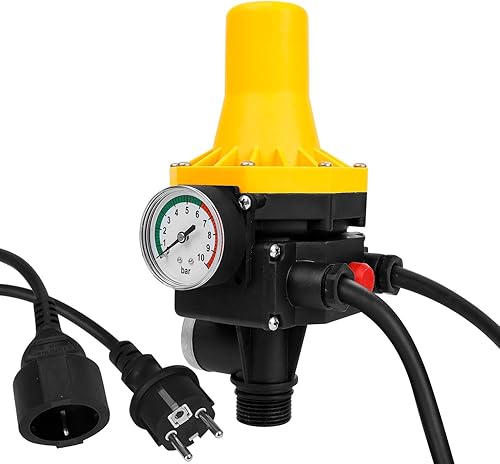 Tubiaz Druckwächter für Pumpensteuerung, Druckschalter 10bar mit Kabel, Durchflusswächter, automatisches Ein- und Ausschalten, für Hauswasserwerk, Gartenbewässerung, gelb