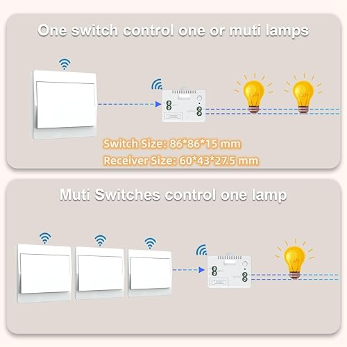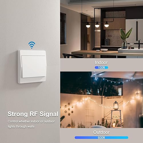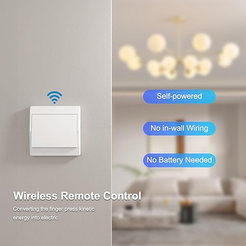 Thinkbee 230V Funk Lichtschalter Set - Selbstversorgender Funkschalter Ohne Batterie Drahtloser Schalter Wasserdicht Wandschalter Steuern Sie Ihre Lampe bis zu 200 m fern (Non-dimmable)