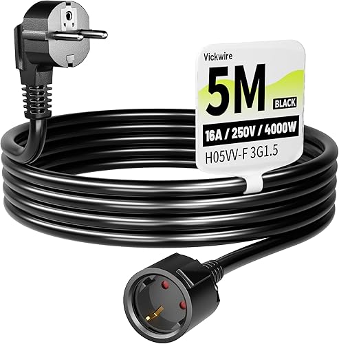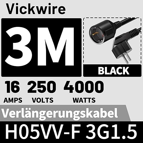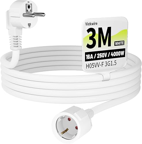 Vickwire Verlängerungskabel 3m Kabel Kabelverlängerungen mit Schutzkontakt Stecker Schuko Verlängerung 16A/250V, Weiß, H05VV-F 3G1,5 mm²