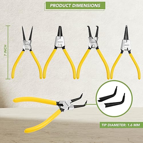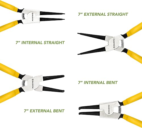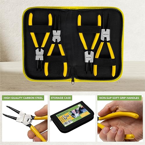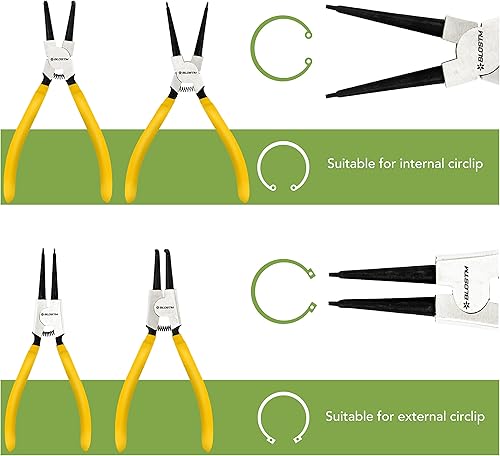 BLOSTM Sprengringzangen Set 4 Stück - 7-Zoll-Sicherungsringzange Innen und Außen - Sprengringzange mit Langlebigen Federn, Rutschfesten Griffen und Aufbewahrungskoffer