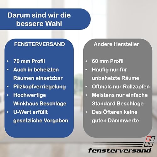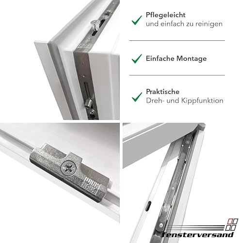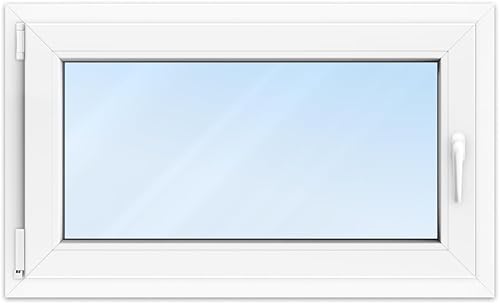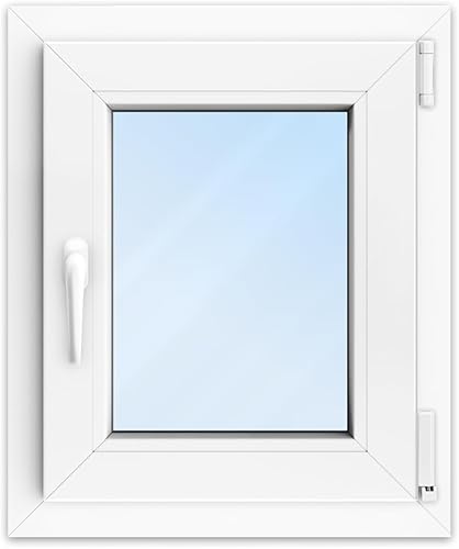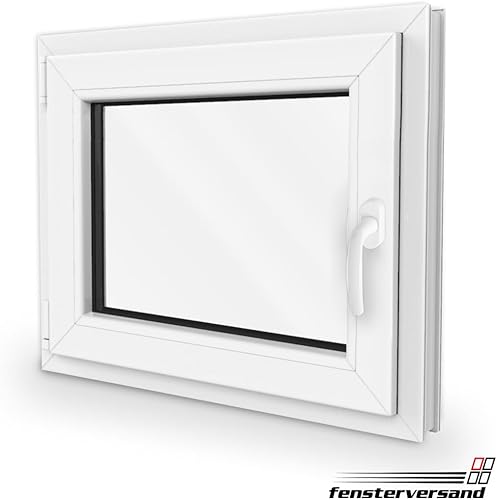 FENSTERVERSAND - Kellerfenster, Kunststofffenster Weiß - 2-fach Verglasung mit Klarglas - Dreh- & Kippfenster, hochwertig isoliertes Fenster 50x50 - DIN links - BxH: 500x500 mm, 70 mm Profil