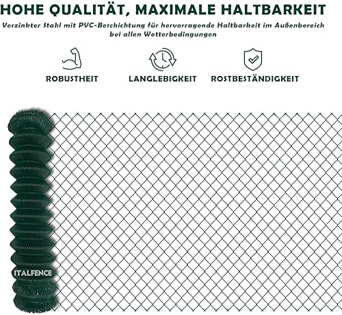 Italfence - Maschendraht-Geflecht, verzinkt und grün kunststoffbeschichtet, 25m (verschiedene Höhen) [Ø2,40mm, 125cm]