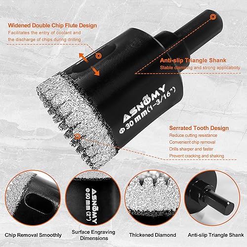 ASNOMY 10Pcs Diamant Fliesenbohrer Set, 6-50mm Gezahntes Diamantbohrer Lochsägen mit Führungsvorrichtung,Diamant Bohrkrone Fliesenbohrkronen zum Bohren für Glas, Fliesen, Porzellan, Granitstein