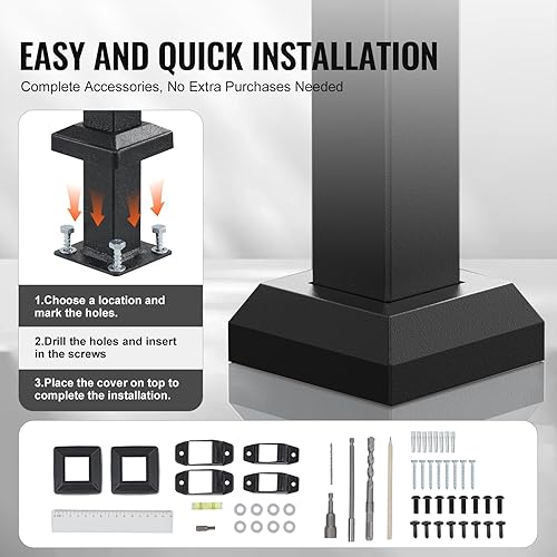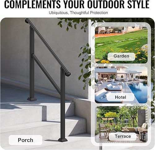 VEVOR Handläufe für Außentreppen, 2-teiliges Handlauf-Set für 2–3 Stufen, Übergangsgeländer aus Karbonstahl mit Montagesatz, Treppengeländer für Senioren, Beton & Veranda & Deck