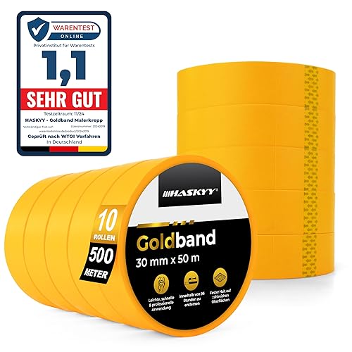 HASKYY Goldband Malerkrepp Kreppband 3x Malerband 30mm x 50m Profi Abdeckband Malertape Klebeband Washi Tape Gold Papiertape Selbstklebend