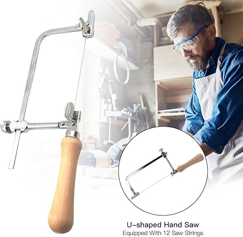 yotutun Laubsäge Dekupiersäge, Metallsäge Bogensäge, Dekupiersäge Juweliersäge, Verstellbare Laubsägen für Holz, 12 Stück Laubsägeblätter, Perfektes Werkzeug für verschiedene Projekte