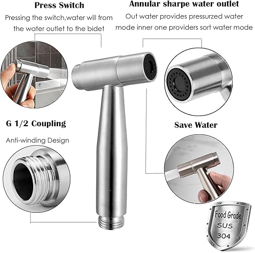 YANINEE 2 Stück Edelstahl Bidet Handbrause für Toilette, WC Dusche mit Dual-Modus, Bidet Brause