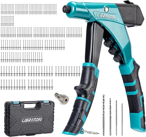 LIBRATON Professionelle Schwerlast-Nietzange, Pop-Nietpistolen-Set, Nietmaschine mit Schaftbehälter, Manuelles Nietwerkzeug, Werkzeuglos Austauschbare Köpfe, für Metall, Holz und Kunststoff