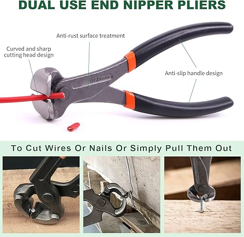 Keadic Polsterklammerentferner und Reißzweckenheber, Werkzeug-Set, Endschneidezange, 17,8 cm, bündig, Nagelabzieher, strapazierfähig, Schneiden von Tischlern, Zangen, Nagelzieher für Zuhause, Büro,
