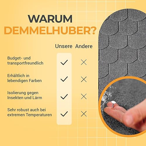 DEMMELHUBER - Bitumen Dachschindeln Biberschwanz Schindeln Bitumendachschindeln wetterfest vielseitig einsetzbar für Gartenhaus Carport und mehr Alternative zu Metall-Dachplatten Rot 21 Stück