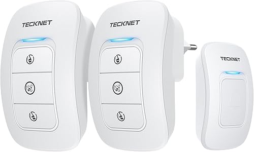 TECKNET Funktürklingel, Funk Türklingel Set, IP65 Aussen Wasserdicht Haustürklingel mit 2 Steckempfängern, 60 Melodien, 5 Lautstärkestufen, 400m Reichweite, Steckdosen Funkklingel Kit