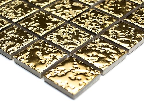 Mosaik Fliese Keramik gold gehämmert für WAND KÜCHE FLIESENSPIEGEL THEKENVERKLEIDUNG Mosaikmatte Mosaikplatte