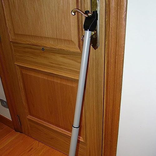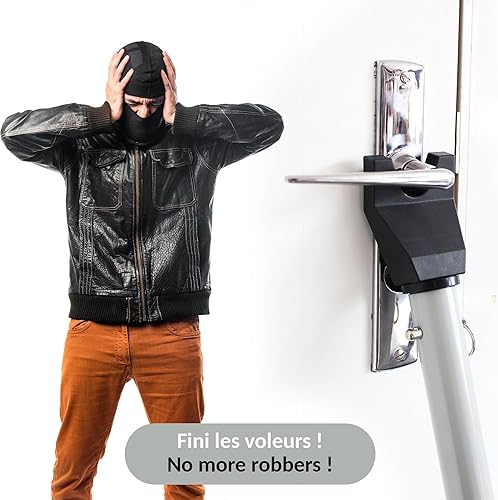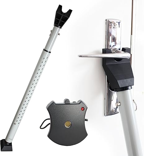 Einbruchsichere Stange - Blockiert Tür- und Fenstergriffe - Teleskoprohr 71 bis 114 cm - Weiche Kunststoffkeile - Erschütterungsmelder - 100dB Alarm - Einfache Installation