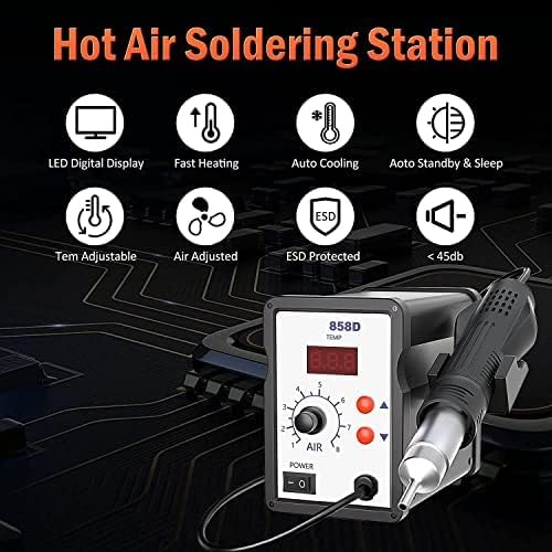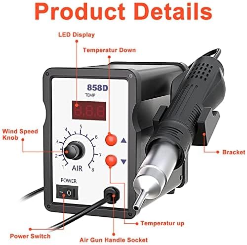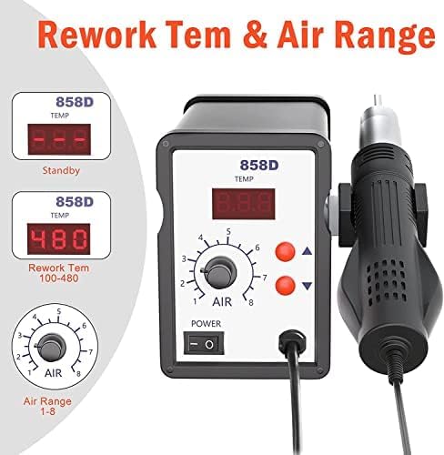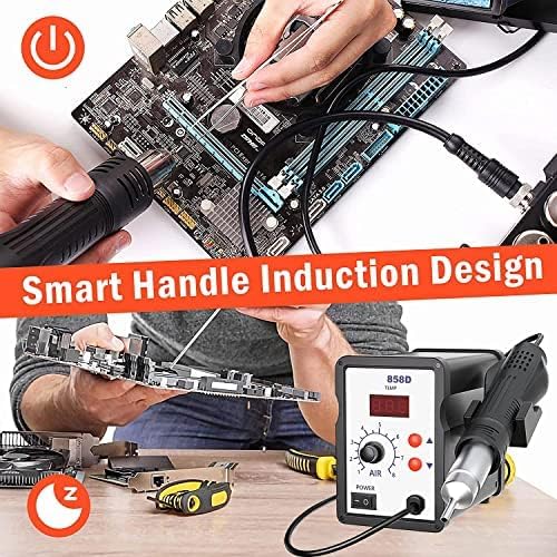 858D Heißluftlötstation, Heißluftlötgerät, Digitalanzeige 100-480°C, 700W, 4 Düsen für für BGA, SOIC, CHIP, QFP, PLCC