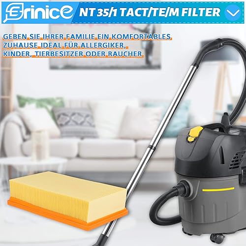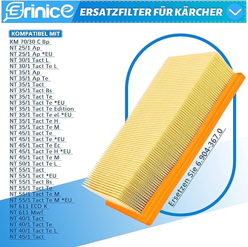Erinice Filter Flachfaltenfilter Ersatzfilter für Kärcher 6.904-367.0 NT 25/1 Ap, NT 35/1 Ap, NT 45/1, NT 55/1, NT 361, NT 561, NT 611, Tact/Te/M/Eco Staubsaugerfilter Ersatzteil für Dewalt D279015-XJ