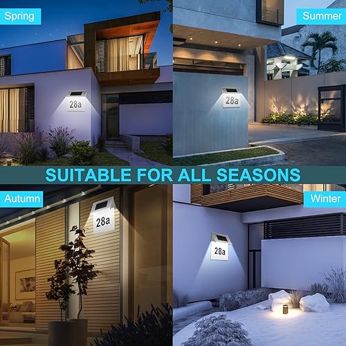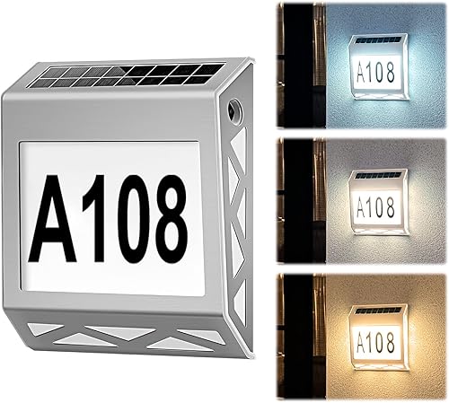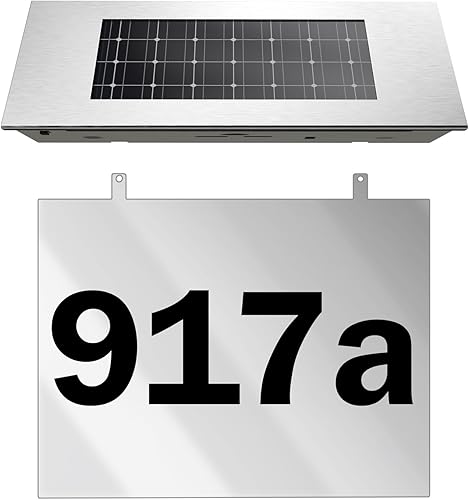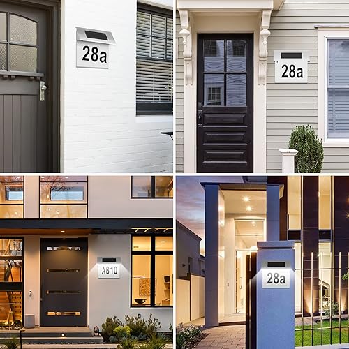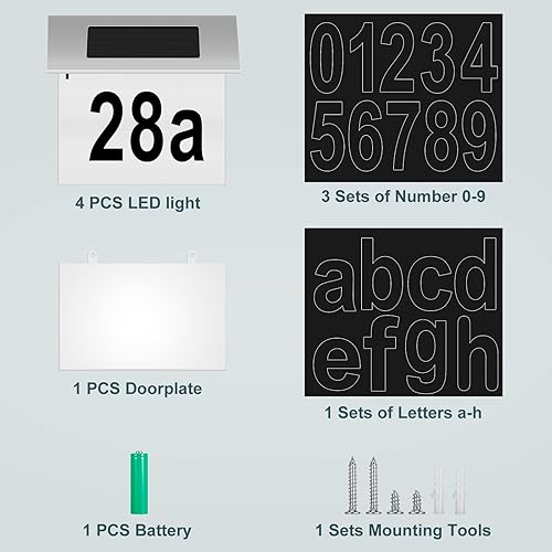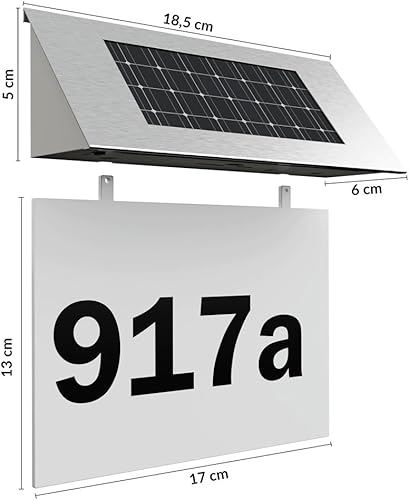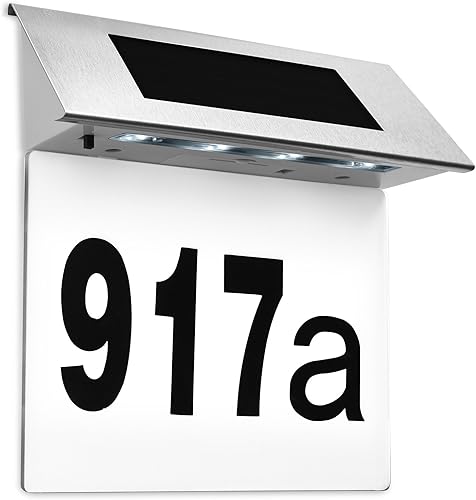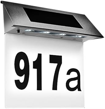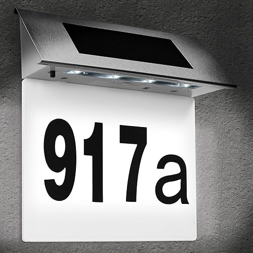DEUBA® Edelstahl Hausnummer Beleuchtet Solar 4 LEDs Dämmerungssensor Wetterfest 0-9 Zahlen a-h Buchstaben Leuchte Haus Nummer Schild Außen